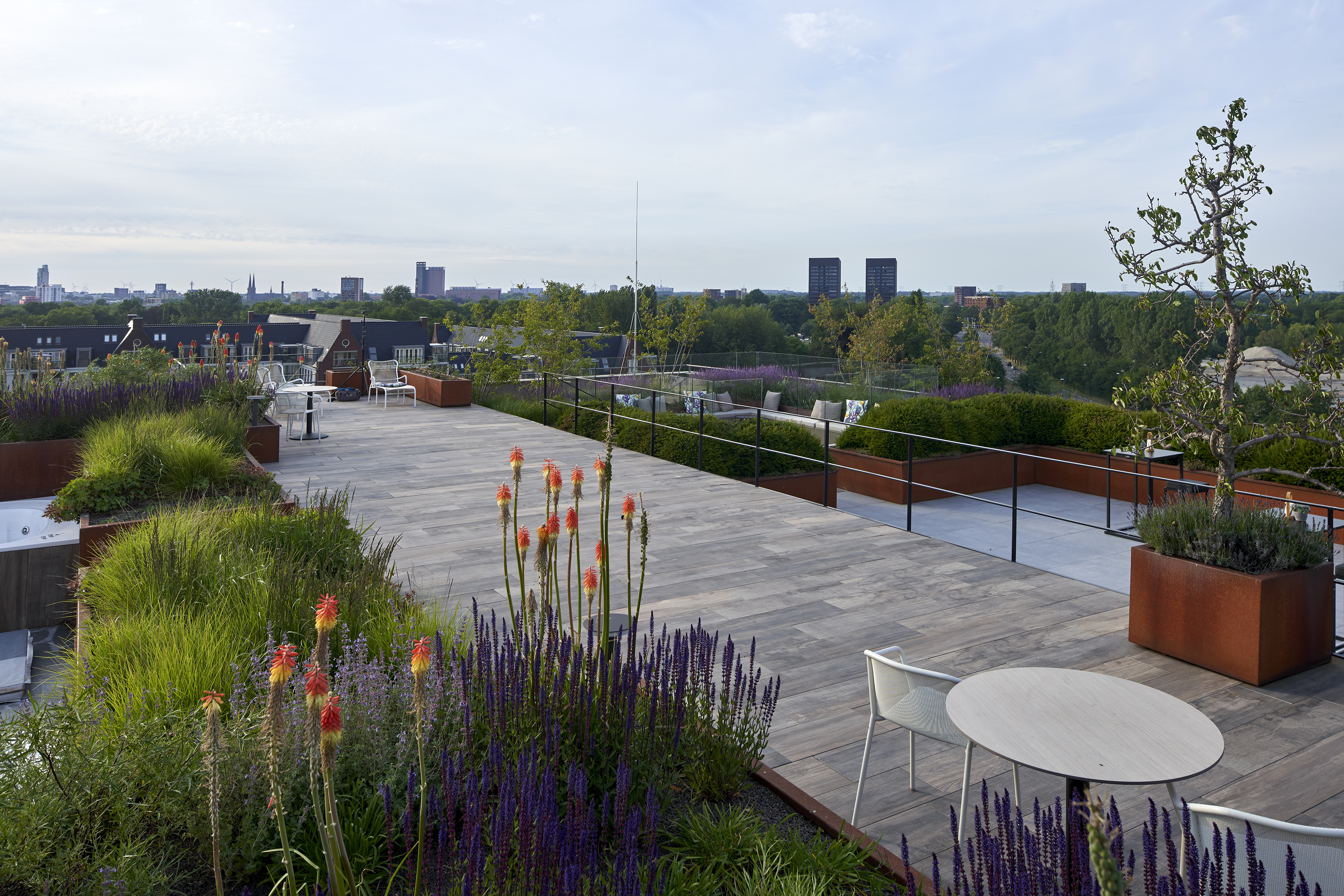 Daarnaast biedt onze groene daktuin met terras de mogelijkheid om, wanneer het weer het toelaat, in de buitenlucht te genieten van dit spectaculaire uitzicht!